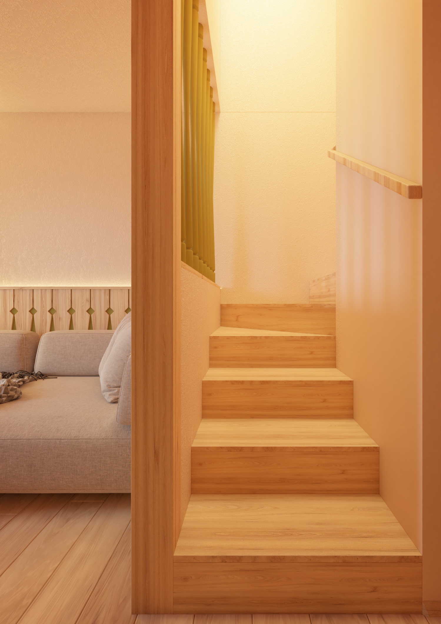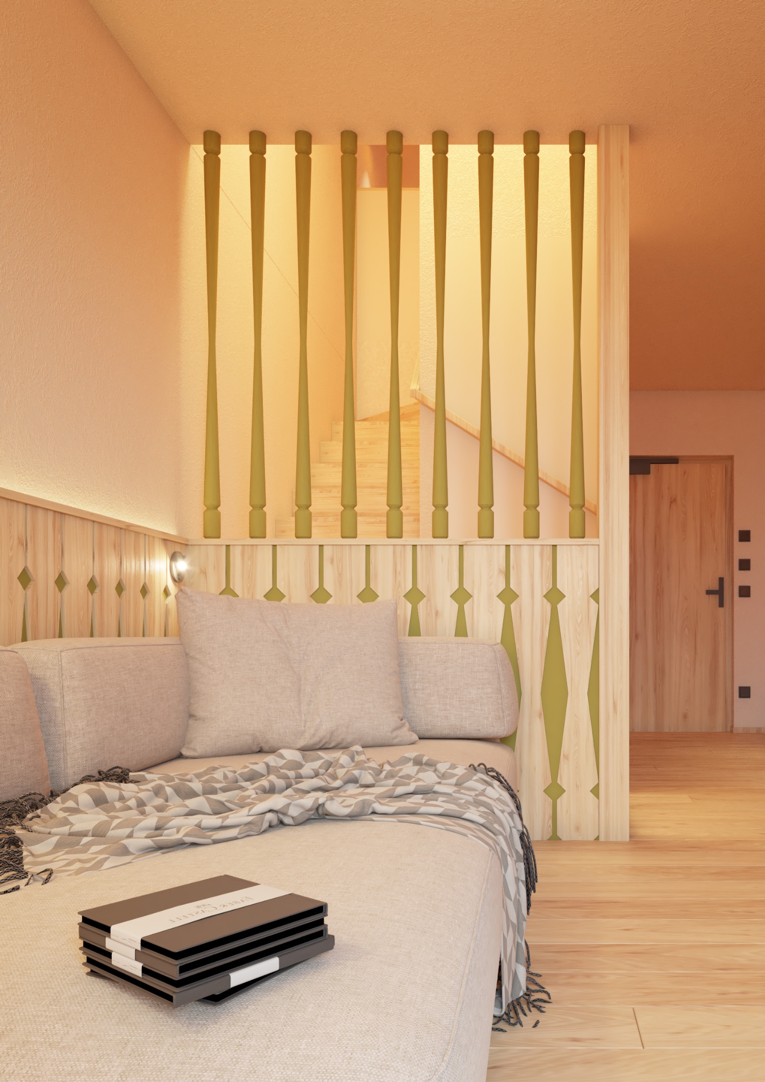• Separater Wohnbereich mit gemütlichem Sofa und Tages-WC auf der unteren Ebene