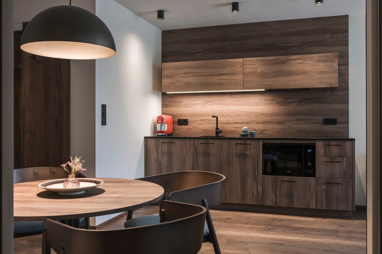 • Kitchenette mit Kühlschrank und Espresso-Maschine