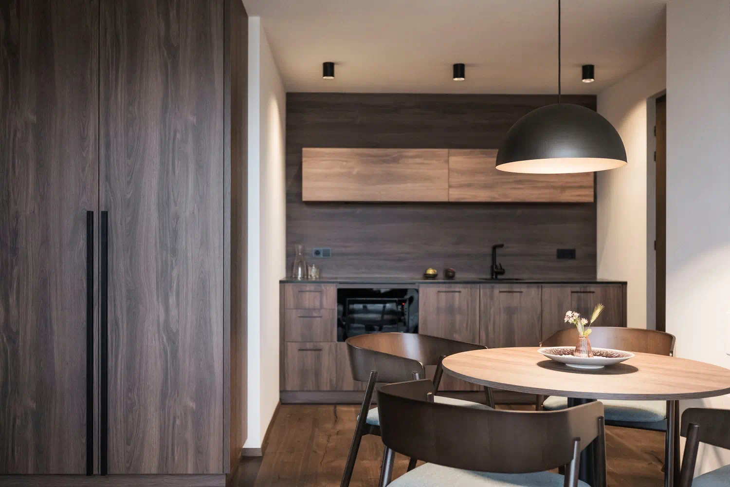 • Kitchenette mit Kühlschrank und Espresso-Maschine